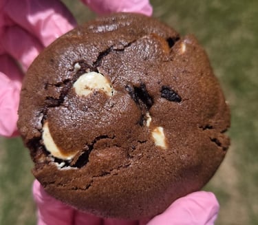 Cookies de chocolate com gotas de chocolate ao leite, chocolate branco e meio amargo.