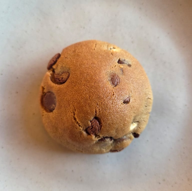 Cookies de baunilha com gotas de chocolate ao leite, chocolate branco e meio amargo.